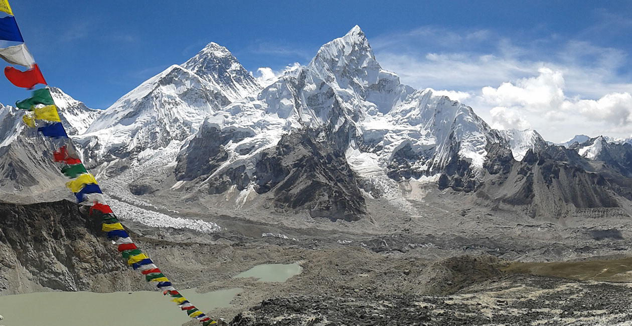 Trek from Lobuche to Everest Base Camp (5486m.) via Gorakshep (5180m.) and again back to Gorakshep takes about seven hours. Trek up the valley following the rocky moraine path, view icy glacial ponds and icebergs down below of the Khumbu glacier. Gorakshep is the location of the original Everest Base Camp with the new camp being further up the valley. Now the trail winds through a rocky path and the Khumbu glacier. The view of Nuptse, Lho-La and Khumbu Tse appears in front of you. Stay overnight at lodge.