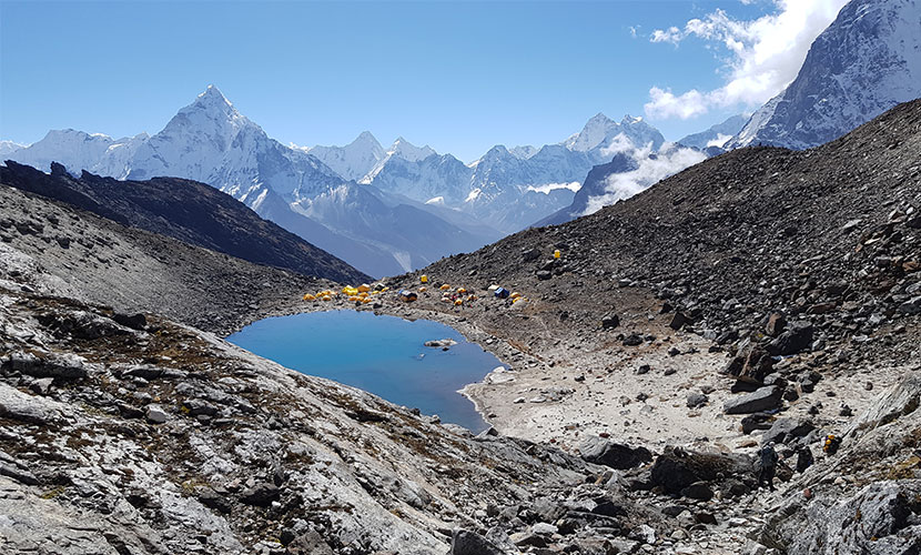 Gokyo is situated by the side of Ngozumpa glacier, the biggest glacier of Nepal. This day you can make a side trip to Fifth Lake via Forth Lake. Or you can trek from Gokyo to GokyoRi. GokyoRi looms above the village on the northern edge of the lake. As you climb, the summits of Everest, Lhotse and Makalu slowly come into sight and the view from the summit of GokyoRi itself, is one of the finest to be had in the Everest region - some say it is even better than that from Kala Patthar. Stay overnight at lodge.